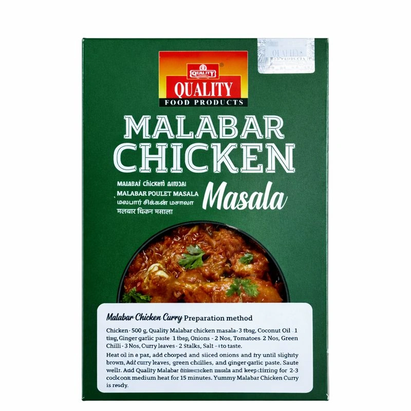 Quality Malabar Chicken Masala 100G is a high-quality grocery product prepared using carefully selected ingredients to ensure authentic flavour and consistent quality. Perfect for everyday cooking, this product is hygienically processed and packed to preserve freshness, taste, and aroma. Suitable for traditional recipes as well as modern culinary needs.